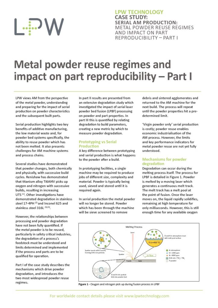 Metal powder reuse regimes and impact on part reproducibility – Part I