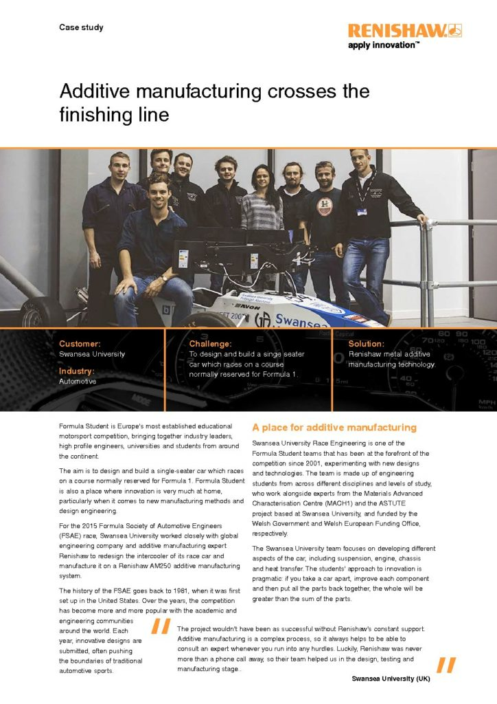 Renishaw: Additive Manufacturing Crosses the Finish Line